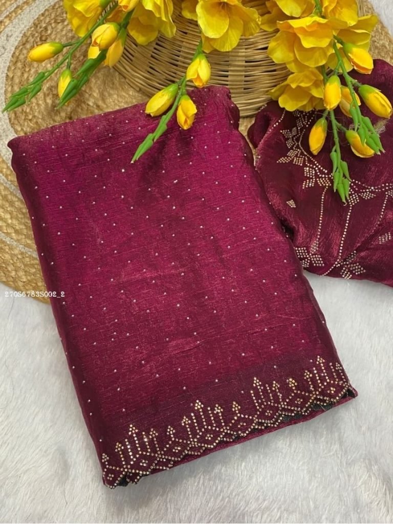 Step into timeless elegance with this beautifully crafted chiffon saree adorned with delicate diamond work. The lightweight chiffon fabric ensures graceful draping, while the intricate stone embellishments add a touch of shimmer and sophistication. This saree comes with a matching blouse piece, perfect for festive occasions, parties, or weddings. The subtle yet stylish design makes it an essential addition to your ethnic wardrobe.