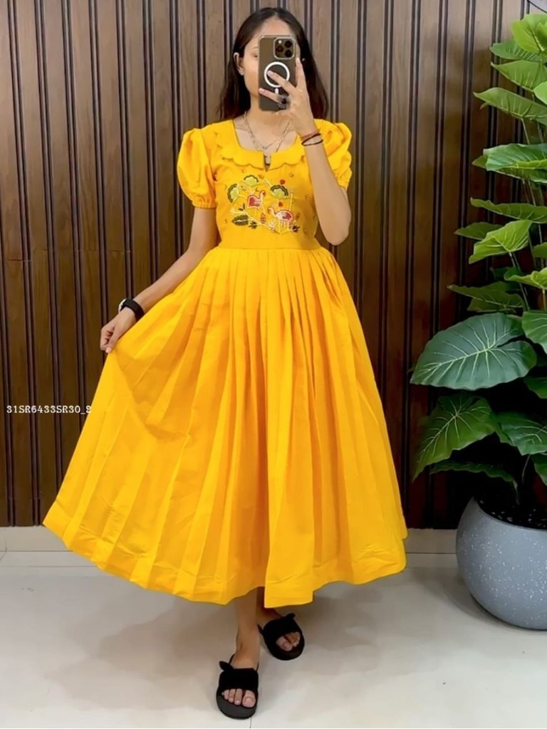 Elegant Pleated Midi Dress with Embroidered Bodice