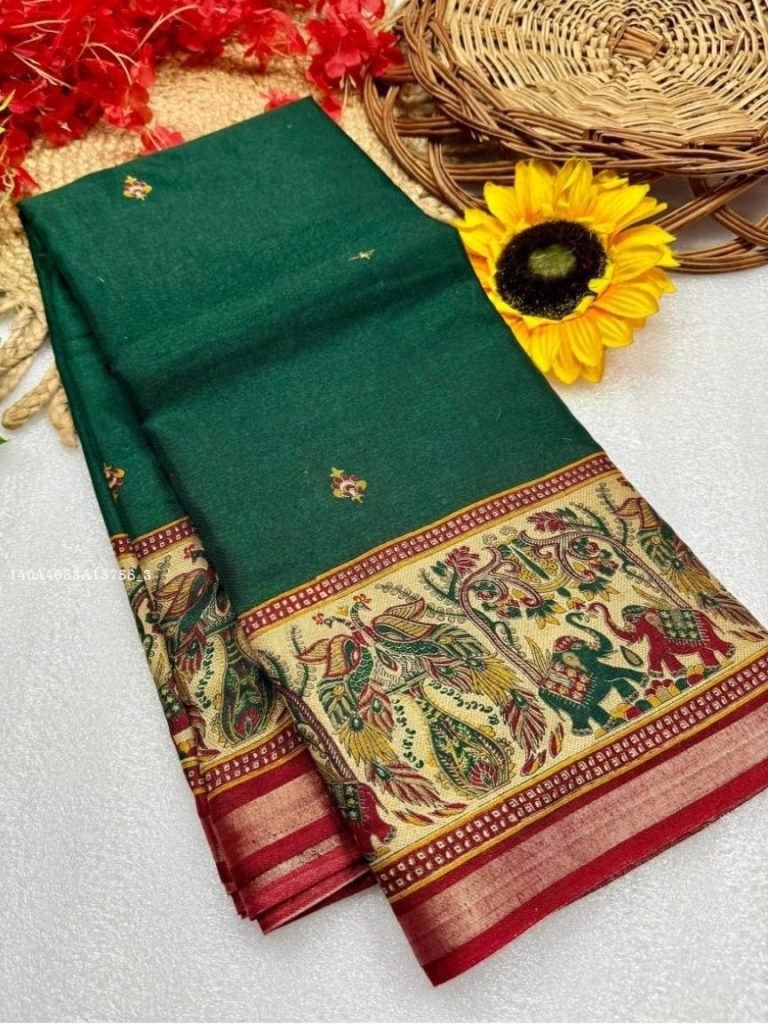 SKU : 140A4683A15758FABRIC : super mul mul cotton vickos flower and patola pallu saree COLOR : greenWASH CARE : NORMAL