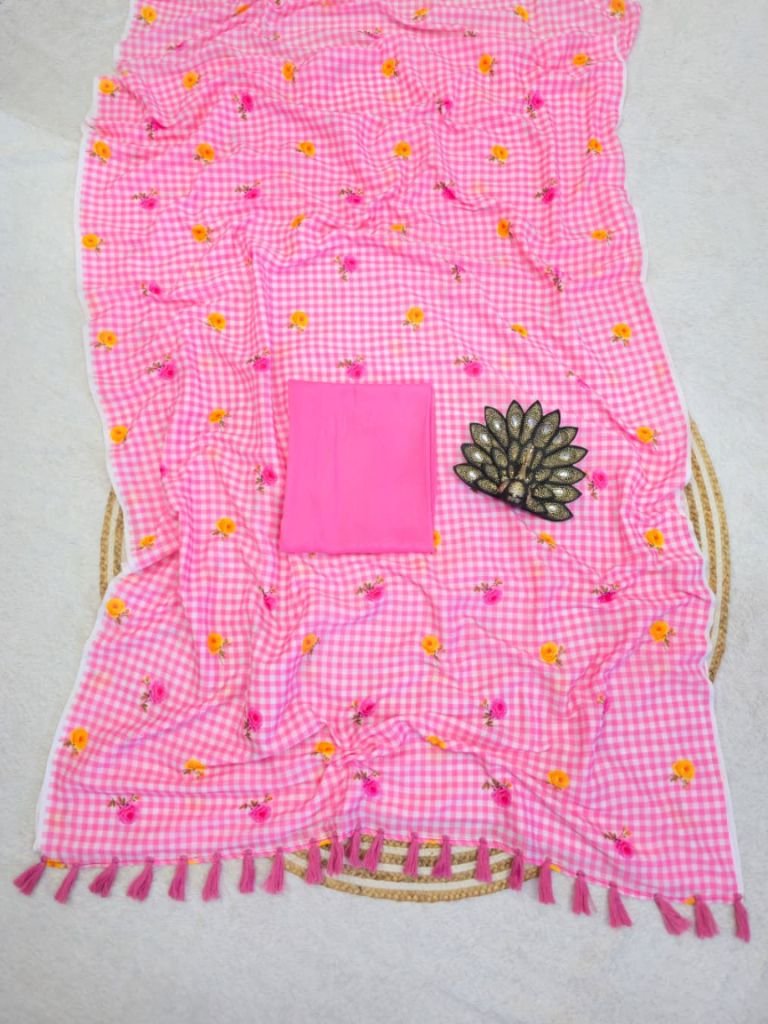 SAREE FABRIC - Premium Soft Mal Cotton With Print Work With Cotton Latkan