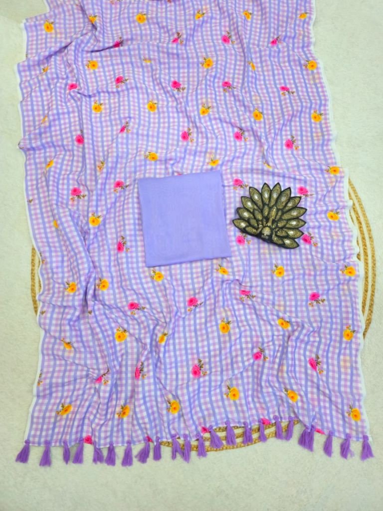 Grace your wardrobe with this beautifully crafted saree made from premium soft mal cotton fabric featuring elegant print work. The lightweight texture offers breathable comfort, while the delicate cotton latkan detailing adds a charming ethnic touch. Paired with a soft mul cotton running blouse piece, this saree is perfect for festive gatherings, traditional occasions, and everyday elegance.