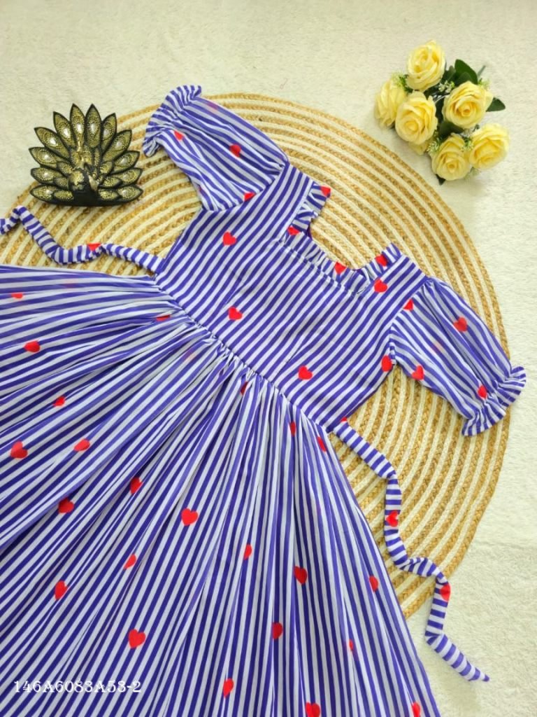 Stylish printed midi dress in premium mul Chanderi fabric with soft lining and elegant flare, perfect for daily wear and outings. Designed for comfort and grace with a flattering fit for all body types.