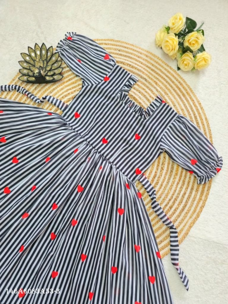 Stylish printed midi dress in premium mul Chanderi fabric with soft lining and elegant flare, perfect for daily wear and outings. Designed for comfort and grace with a flattering fit for all body types.